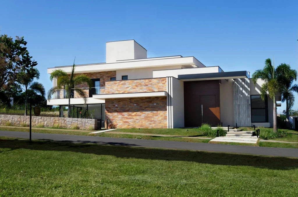 A casa Golfe tinha uma primeira premissa, de ser idealizada para venda. O projeto foi todo construído de acordo com o terreno para melhor aproveitamento, em conceito aberto que fica toda voltada para a área de lazer. Além disso, são quatro suítes com varanda e muita comodidade para a família. Por ser de esquina, nos permitiu explorar diversas técnicas e um design arrojado que compõe as duas fachadas.